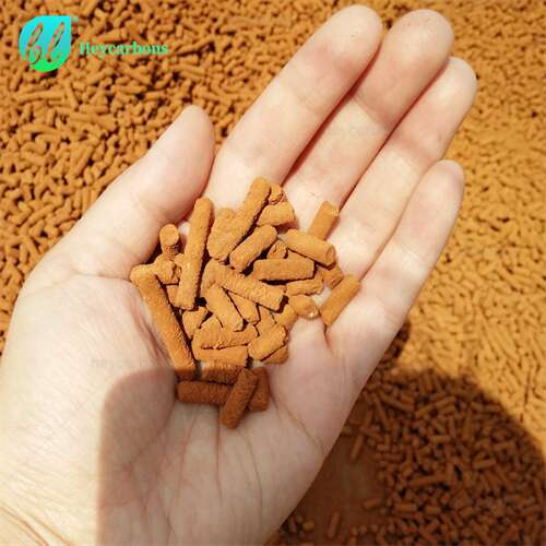 Special process adding Special substance Pellet (Extruded) activated carbon also named Catalyst activated carbons. used for acid gas treatment such as H₂S, water washing regeneration, and high strength.